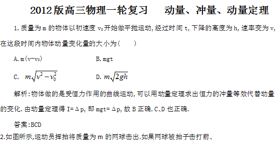 谷歌:贵州省2012届高三物理复习测试:22动量、冲量、动量定理