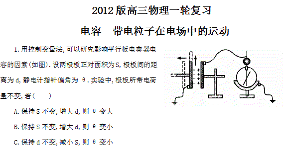 百度:贵州省2012届高三物理复习测试:33电容 带电粒子在电场中的运动