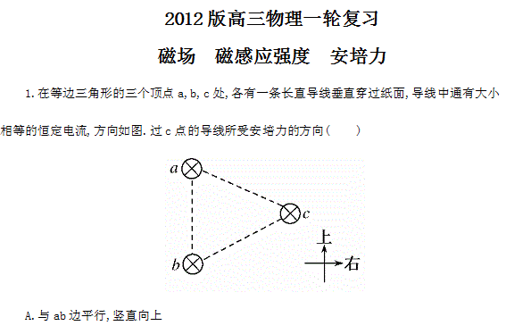 谷歌:贵州省2012届高三物理复习测试:36磁场 磁感应强度 安培力