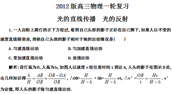 百度:贵州省2012届高三物理复习测试:44光的直线传播 光的反射