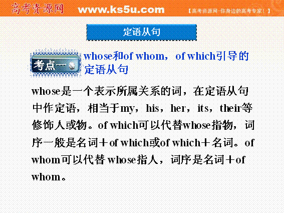 有道:2012届高考英语《优化方案》一轮总复习课件:语法专项训练-定语从句(译林版江苏专用)