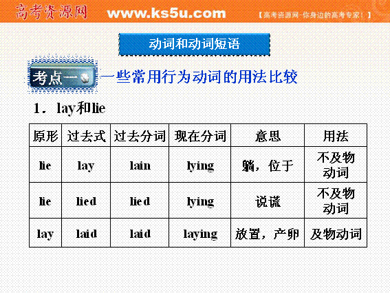 有道:2012届高考英语《优化方案》一轮总复习课件:语法专项训练-动词和动词短语(译林版江苏专用)