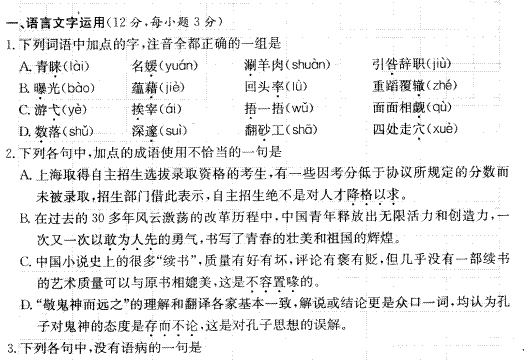 谷歌:湖南省重点中学(一)2012届高三第二次月考(语文)扫描版