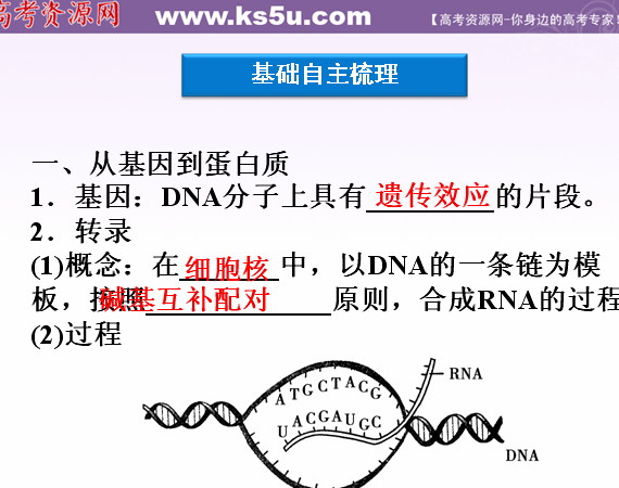 有道:2012优化方案高考生物总复习苏教版(江苏专用)(课件):必修2第4章第3节基因控制蛋白质的合成