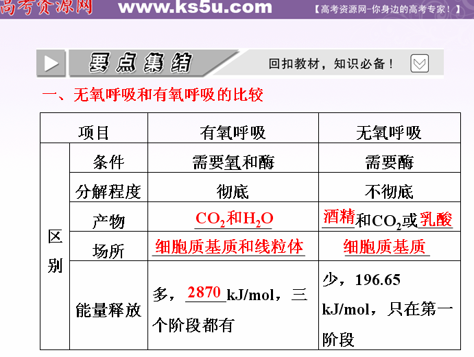 有道:2012年高考生物总复习一轮《创新方案》必修部分: 第三章 第七、八节 细胞呼吸 新陈代谢的基本类型