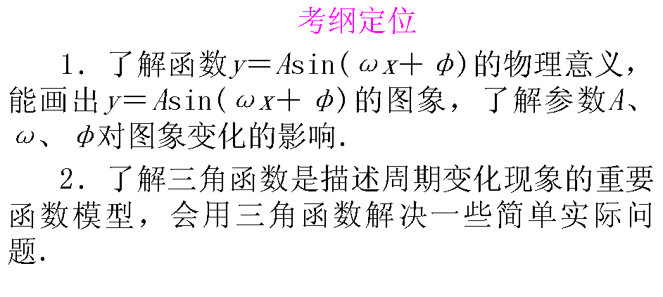 有道:2012届高考文科数学一轮复习课件:3-4函数y=Asin(ωx+φ)的图象及三角函数模型的简单应用(北师大版)