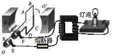 中,线框面积s=0.5m2,线框电阻不计。线框绕垂直于磁场的轴oo′以角速度ω=200rad/s匀速转动,并与理想变压器原线圈相连,副线圈线接入一只“220v,60w”灯泡,且灯泡正常发光,熔断器允许通过的最大电流为10a,下列说法正确的是
