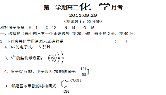 谷歌:北京市重点中学2012届高三9月月考(化学)缺答案