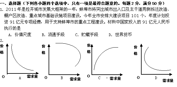 百度:【KS5U首发】安徽省蚌埠二中2011年高二第一次质检(政治)