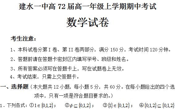 百度:云南省建水一中11-12学年高一上学期期中考试 数学试题