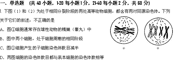 谷歌:江西省吉安一中11-12学年高二上学期期中考试(生物)文科