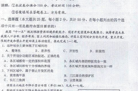 百度:【KS5U首发】安徽省泾县中学11-12学年高二上学期期中考试试题 (地理)扫描版