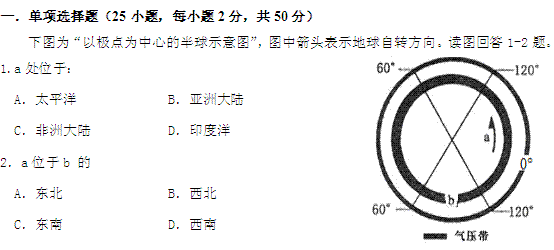 百度:【KS5U首发】浙江省杭州高级中学11-12学年高二上学期期中试题地理