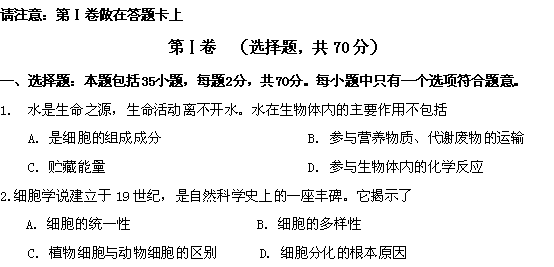 百度:江苏省泰州中学11-12学年高二上学期期中考试(生物)必修