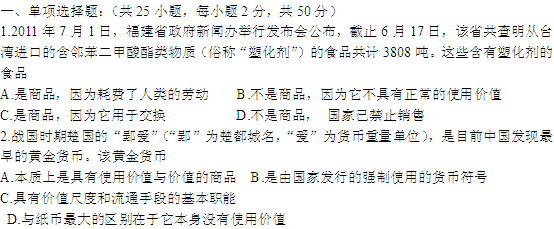 百度:【KS5U首发】山西省太原五中11-12学年高一上学期期中试题政治