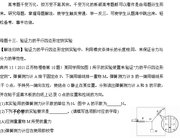 谷歌:掌握母题100例触类旁通赢高考物理系列母题十三 验证力的平行四边形定则实验