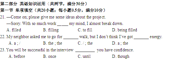 谷歌:【KS5U首发】浙江省余姚中学11-12学年高一上学期期中试题英语