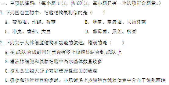 谷歌:【KS5U首发】福建省莆田一中2012届高三上学期期中考试题生物