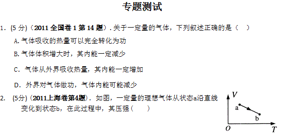 有道:【KS5U独家】山东省2012届高三物理二轮专题复习:8 热学部分(选修3-3)(新人教版)