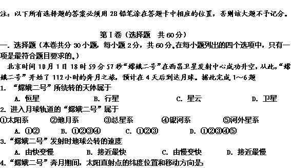 百度:【KS5U首发】安徽省蚌埠二中11—12学年高一上学期期中考试(地理)