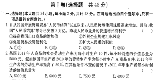 百度:河北省普通高中2012届高三教学质量检测 政治 扫描版