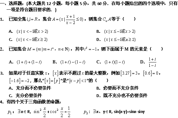 谷歌:【KS5U首发】河北省正定中学2012届高三第二次考试(数学理)