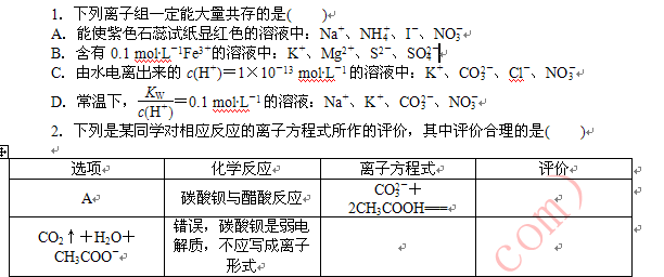 谷歌:2012高考二轮复习专题限时集训:化学 专题4 离子反应