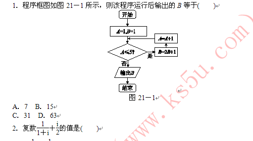 谷歌:2012高考二轮复习专题限时集训:数学(理) 第21讲 算法与复数