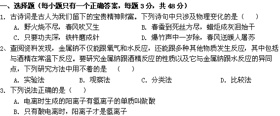 百度:【KS5U首发】安徽省蚌埠铁中11-12学年高一上学期期中考试(化学)缺答案