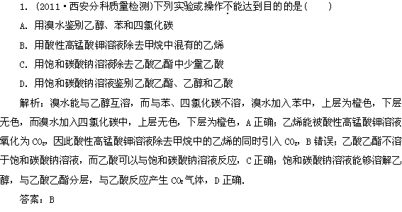 有道:2012届高三化学基础复习针对测试:选修五 第二章 有机物的鉴别