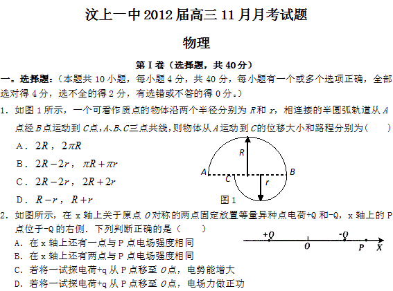 百度:【KS5U首发】山东省济宁市汶上一中2012届高三11月月考 物理试题