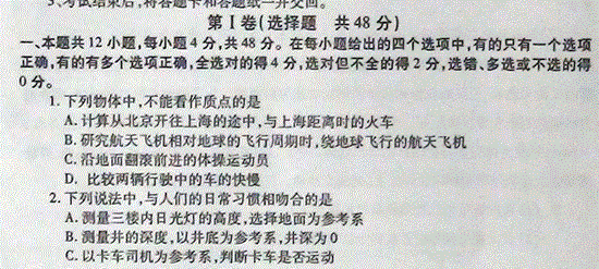 百度:【KS5U首发】山东省曲阜师大附中11-12学年高一上学期期中考试 物理试题 扫描版