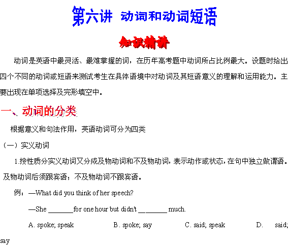 百度:2012届高考英语语法精讲精练第六讲 动词和动词短语