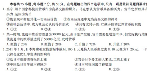 百度:安徽省示范高中2012届高三第一次大联考(政治)扫描版