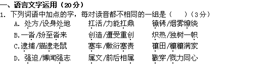 百度:江苏省扬州中学11-12学年高二上学期期中考试(语文)
