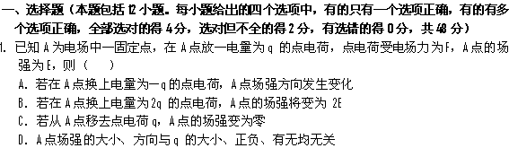 百度:四川省南充高中11-12学年高二上学期期中考试(物理)