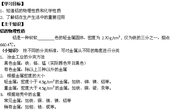 百度:2011年高一化学教学案:3《铝的性质》(苏教版必修1)