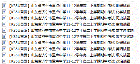 百度:【KS5U首发】山东省济宁市重点中学11-12学年高二上学期期中考试 全科10份