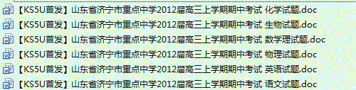 百度:【KS5U首发】山东省济宁市重点中学2012届高三上学期期中考试 理科6份