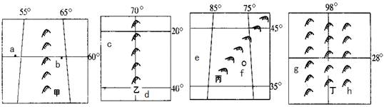 下列关于甲、乙、丙、丁四山脉位置的说法中,正确的是