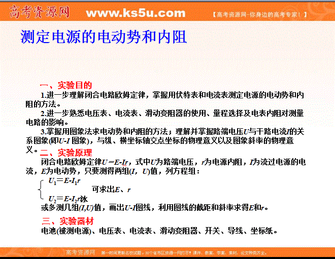 有道:2012高考物理自学课件 7.5测定电源的电动势和内阻基础课件