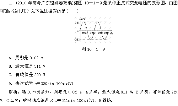 谷歌:2012届高三物理总复习基础测试(鲁科版):10.1交流电的产生和描述
