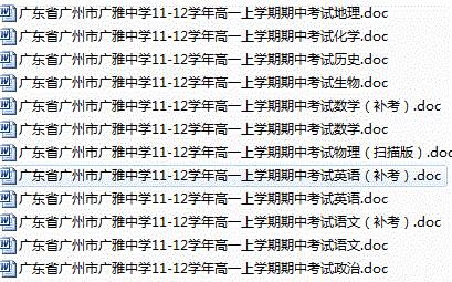 百度:广东省广州市广雅中学11-12学年高一上学期期中考试 全科12份