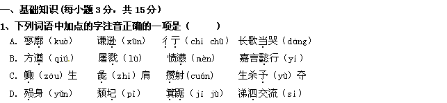 百度:江西省会昌中学2011-2012学年高一上学期第一次月考试题(语文)