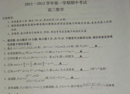 百度:江苏省苏州五市三区2012届高三上学期期中考试(数学)扫描版