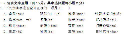 有道:【KS5U首发】浙江省台州中学11-12学年高二上学期第一次统练试题语文