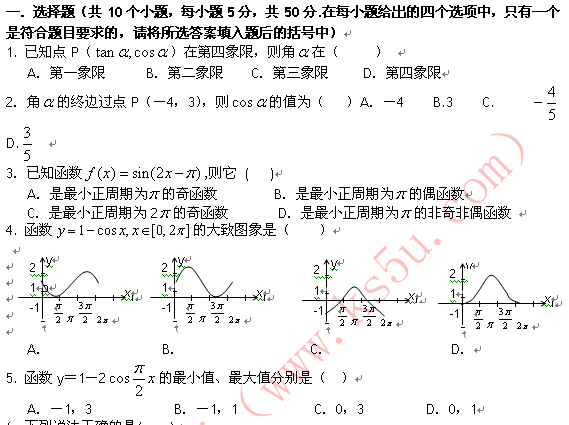 百度:江西省新建二中11-12学年高一上学期数学周练试题(北师大版必修4)