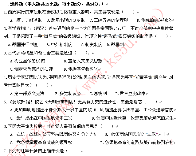 百度:江西省兴国县将军中学2011-2012学年高一第三次月考历史试题(无答案)