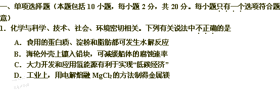 百度:江苏省无锡市洛社中学2012届高三12月月考(化学)(无答案)