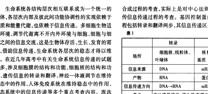 谷歌:中学生物论文:_生命系统信息传递_专题评析